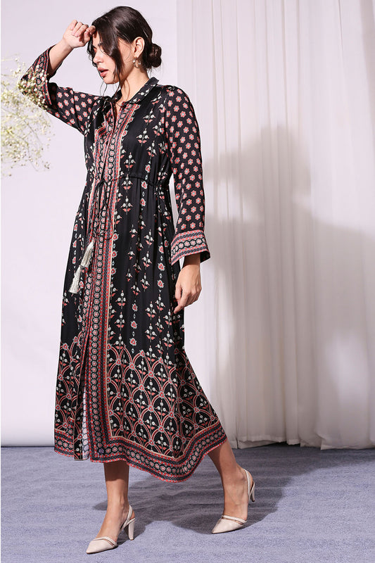 ETHNIC PRINTED DRESS WITH WAIST TIE UP