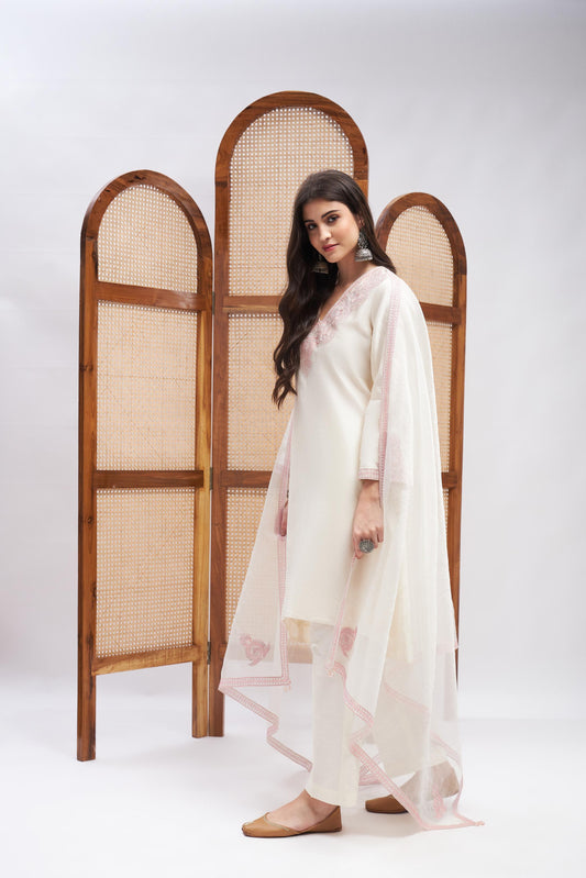 ALANA IVORY MOTHER OF PEARLS EMBELLISHED TWO PIECE CO-ORD SET