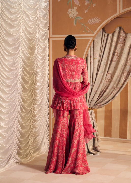 GULZAAR APPLIQUED PEPLUM TOP WITH PALAZZOS