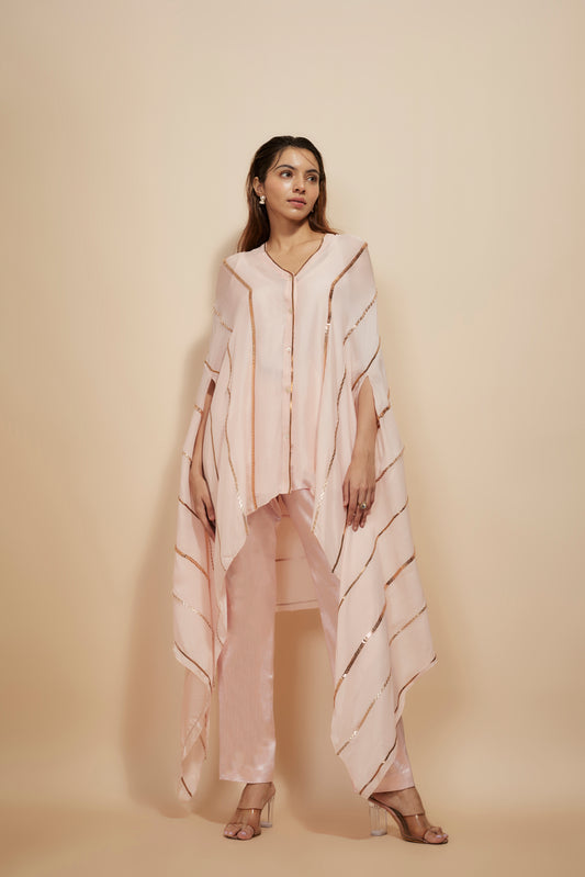 LIGHT PINK SHARARA WITH EMBROIDERED PEPLUM TOP AND DUPATTA