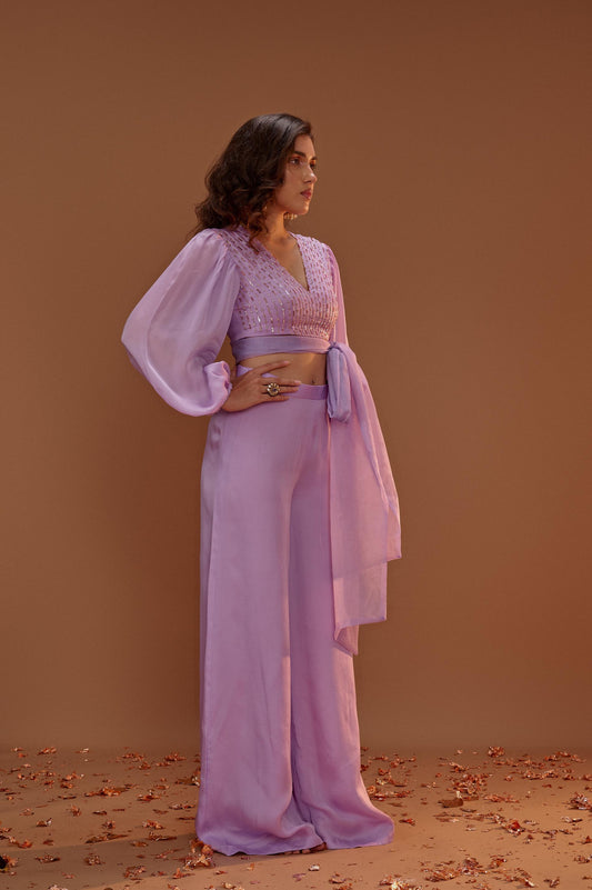 LILAC CROP TOP WITH PALAZO AND ORGANZA TIE UP