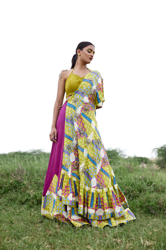 MAGENTA PINK ABSTRACT HAND EMBROIDERED CHANDERI KURTA WITH PANTS & DUPATTA