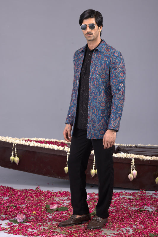 MAYUR BLUE KURTA JACKET SET