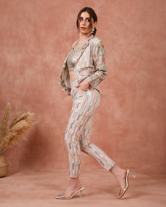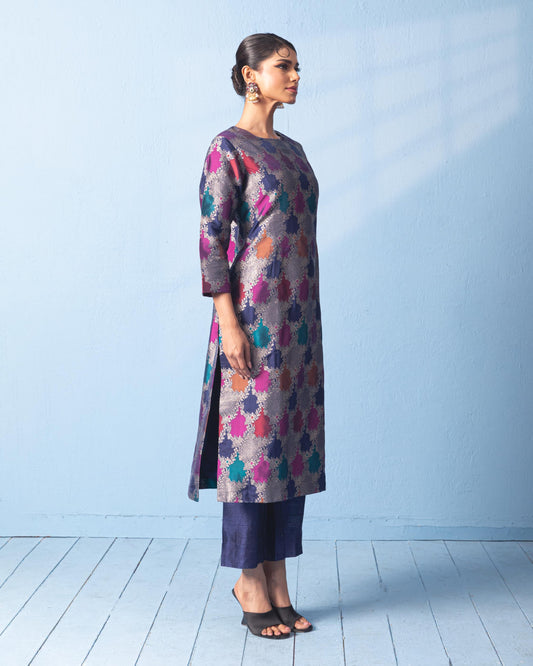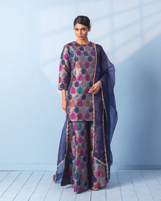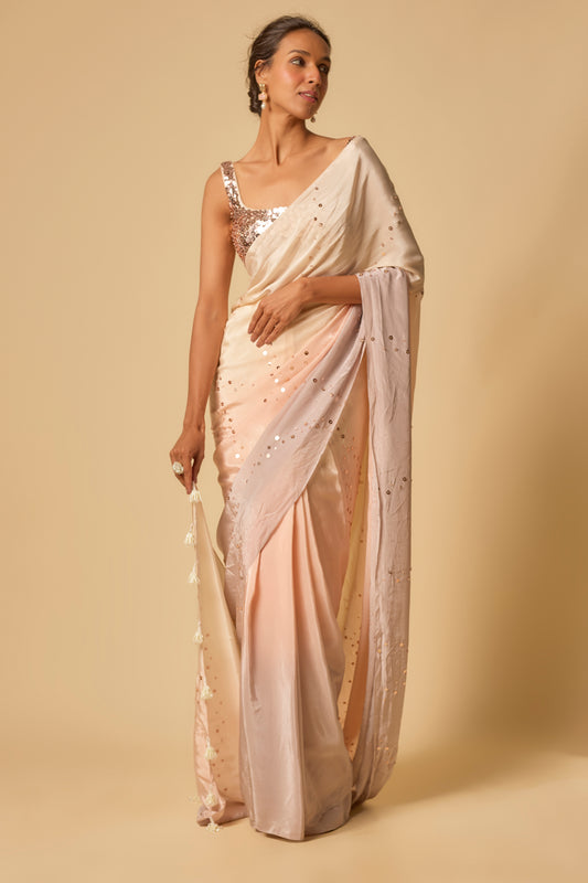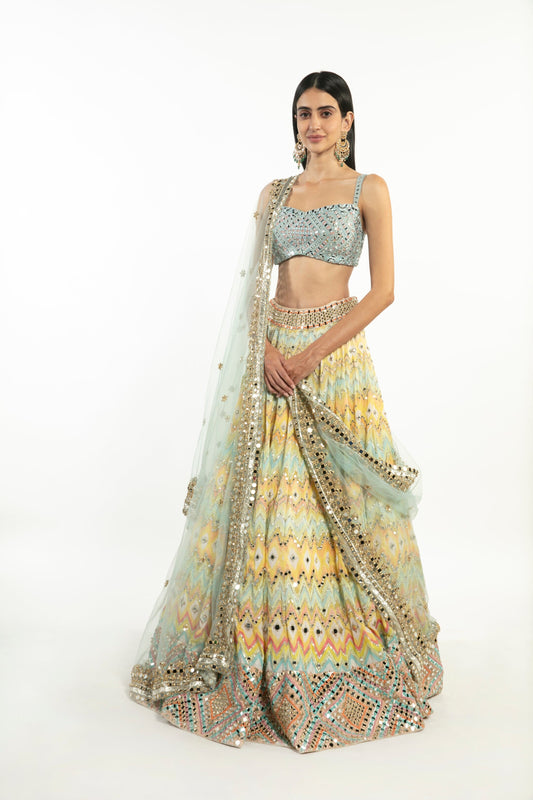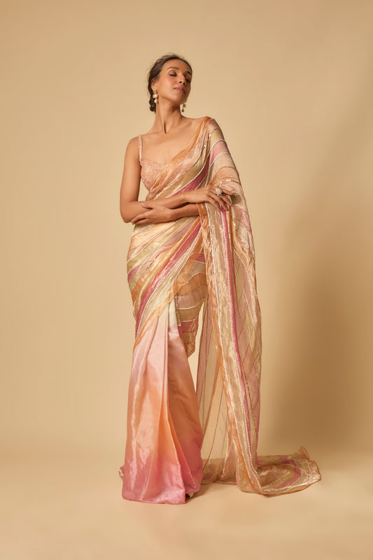 MULTI-COLOUR BLOCK SAREE WITH NEON GREEN BLOUSE