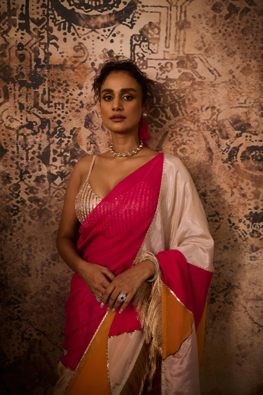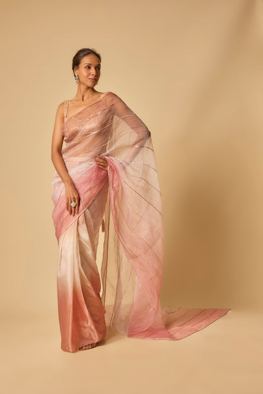 MULTI-COLOUR OMBRE SAREE WITH EMBROIDERED BLOUSE