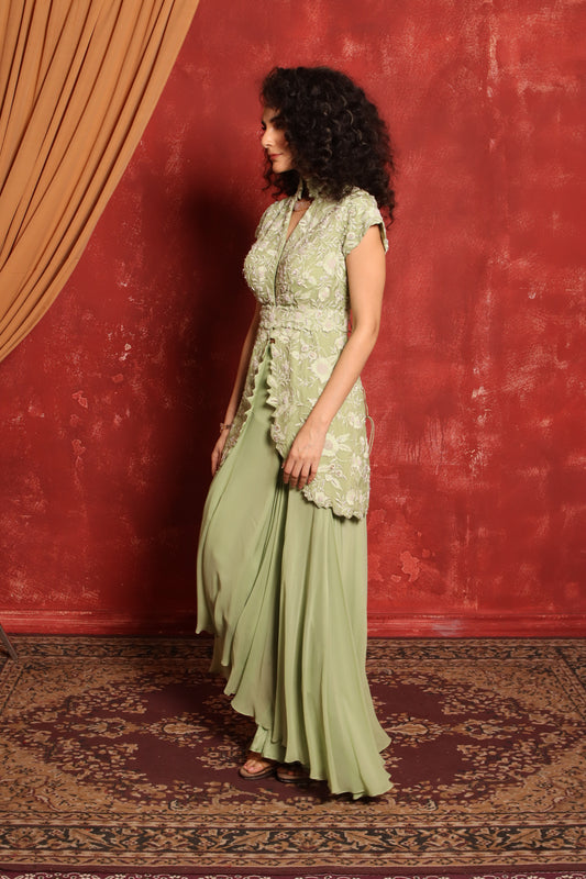 ORCHID BLOOM PRINTED LONG DRESS WITH JACKET