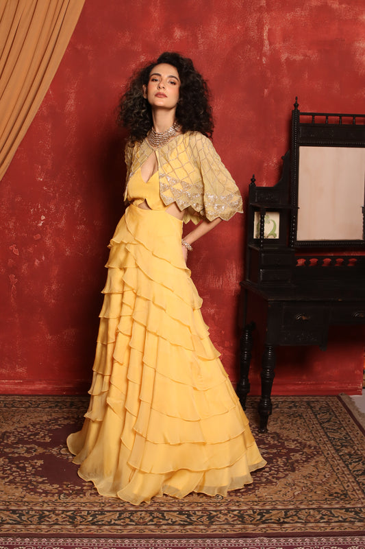 ARIEL 3D RHINESTONE EMBELLISHED BUTTERFLY CAPE THREE - PIECE CO-ORD SET