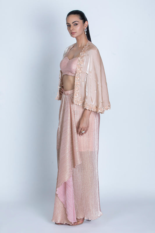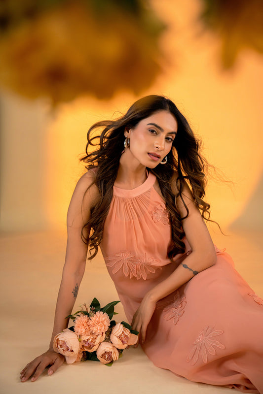 PEACH EMBROIDERED CORSET WITH ROSE GOLD SKIRT
