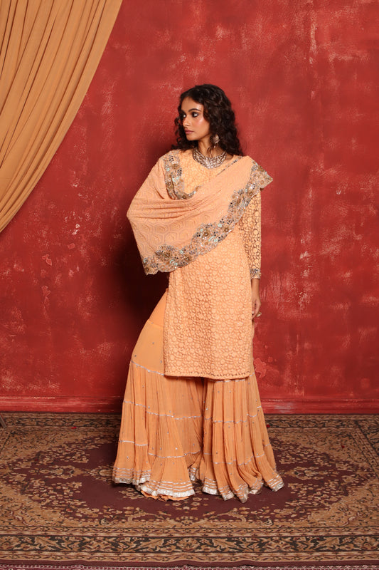 PEACH EMBROIDERED JACKET KURTA WITH PANTS