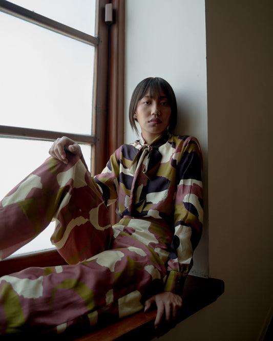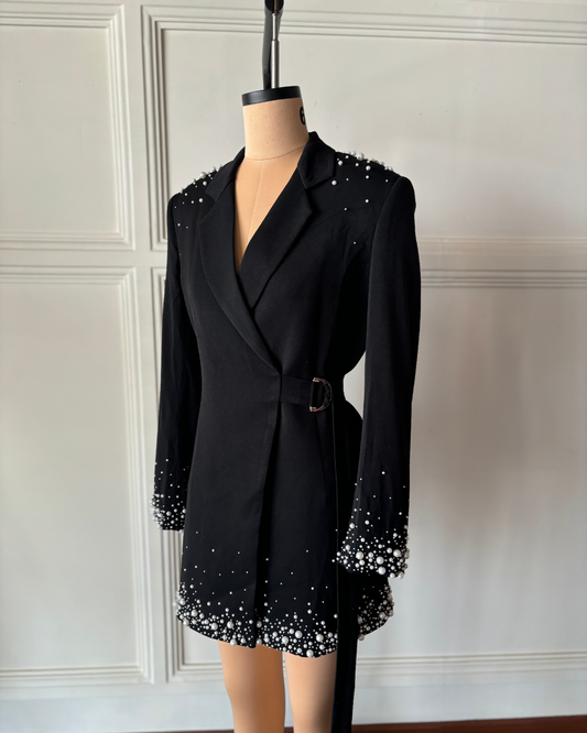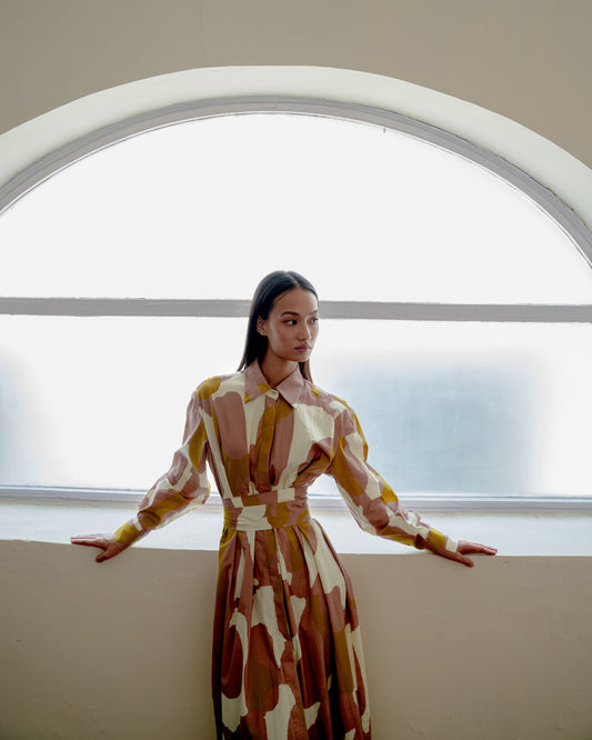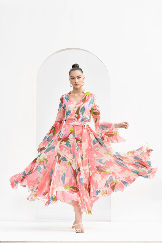 PEACH/ BLUE SHIBORI EMBROIDERED VEST COAT WITH SKIRT