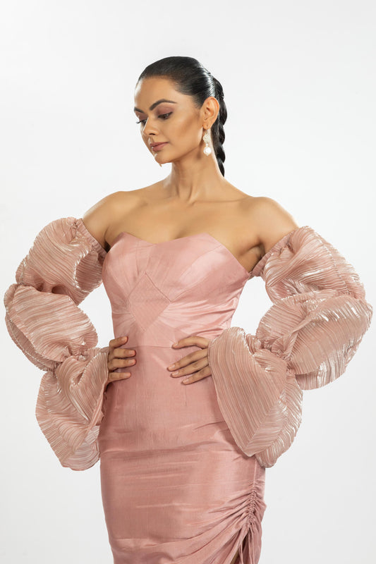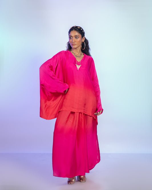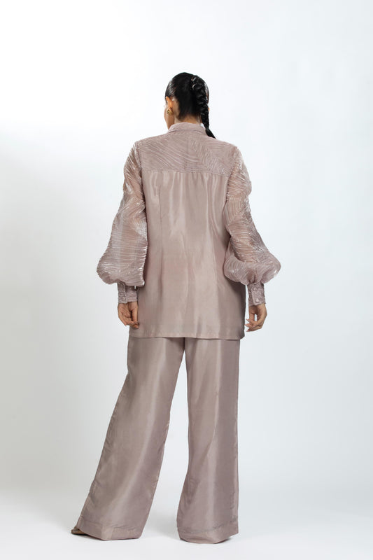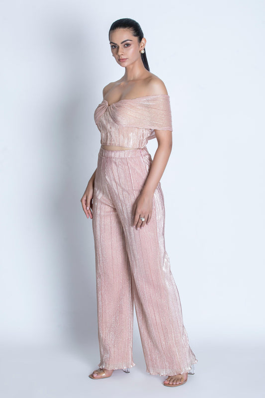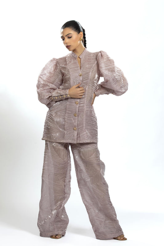 PINK PLEATED ORGANZA WITH BAMBOO SILK CO-ORD SET
