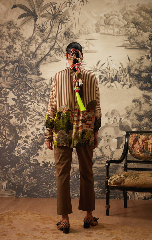 ASYMMETRIC SILVER STRIPE ORGANZA SET