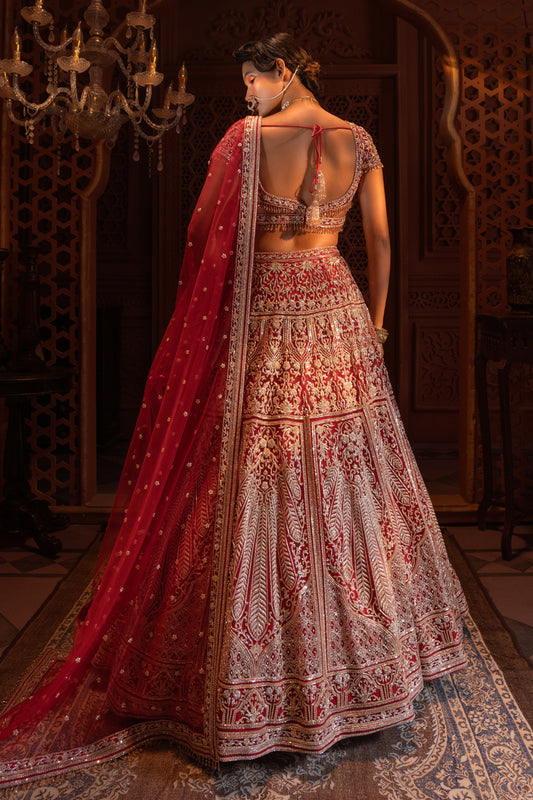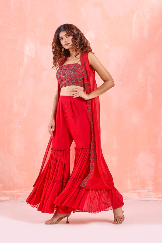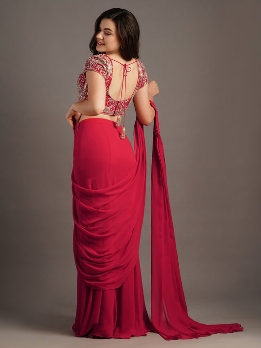 RED EMBOIDERD BLOUE WITH PURPLE SKIRT & DRAPE