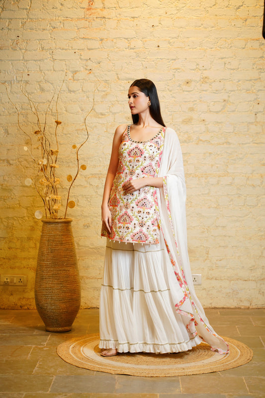 SAMEEHA - SHORT KURTA WITH SHARARA AND DUPATTA
