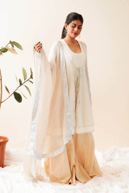 SEE THROUGH SILVER-DOUBLE ANARKALI SET