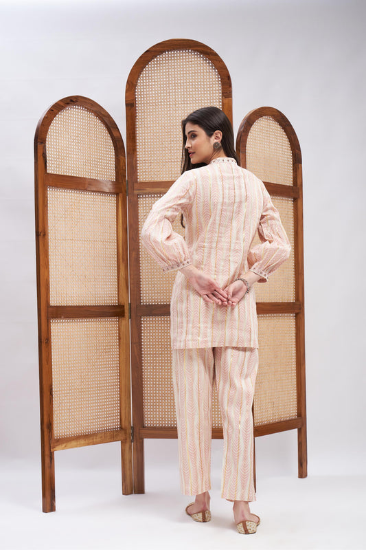 TAARANI EMBELLISHED V-NECK DRAPE SKIRT SET