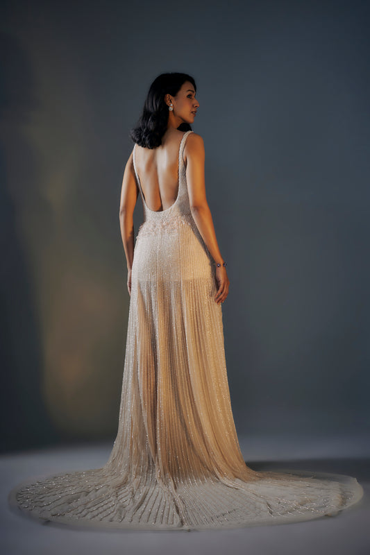 BEIGE EMBROIDERED FISHCUT LEHENGA WITH BLOUSE AND DUPATTA