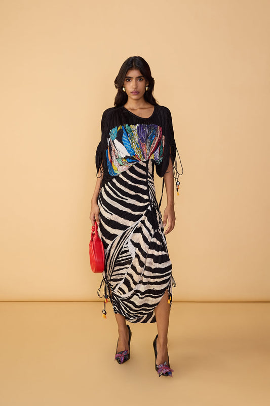 ZINNIA APPLIQUE CO ORD SET WITH HIGH LOW CAPE