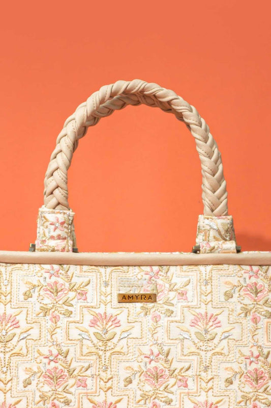 MOGRA EMBROIDERED HANDBAG - OFF-WHITE