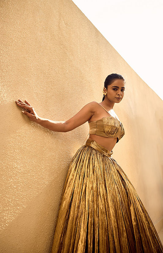 HALTER NECK CROP TOP WITH MAL LEHANGA AND CRUSHED COTTON DUPATTA