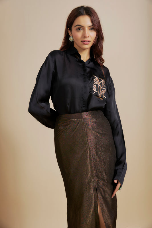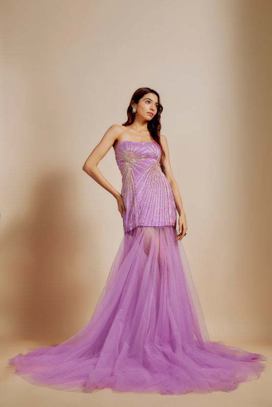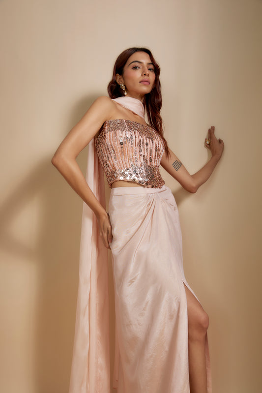 PEACH EMBROIDERED CORSET WITH ROSE GOLD SKIRT