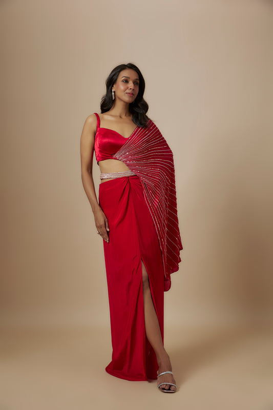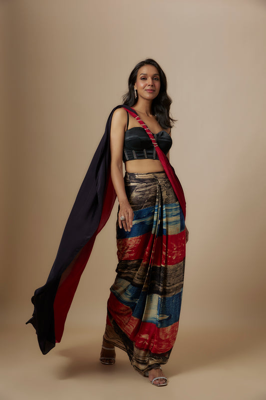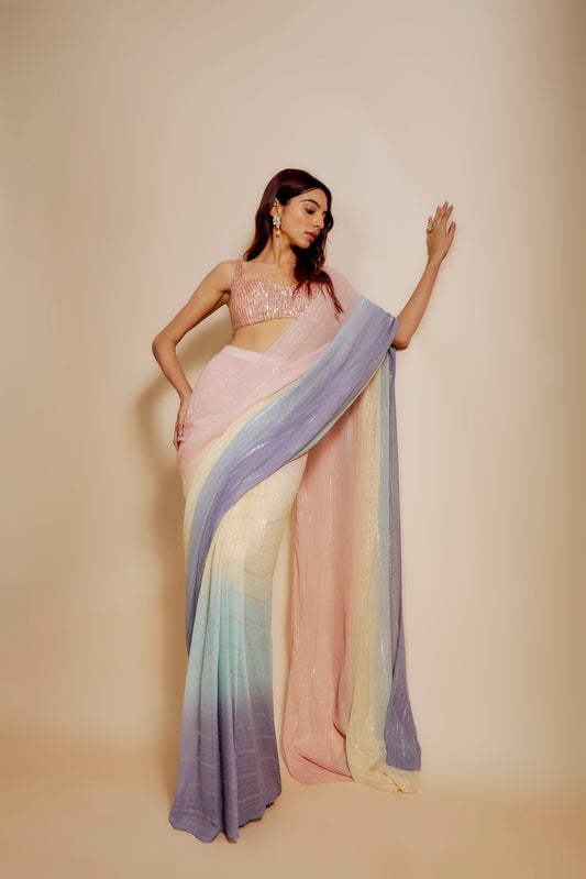 MULTI-COLOUR OMBRE SAREE WITH EMBROIDERED BLOUSE