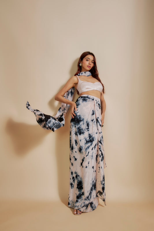 PINK AND BLACK SHIBORI SKIRT WITH PINK BLOUSE WITH DUPATTA