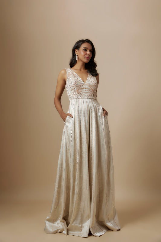 BLUE OMBRE EMBROIDERED SAREE WITH CREAM BLOUSE