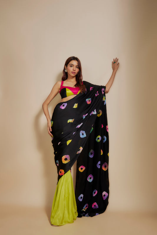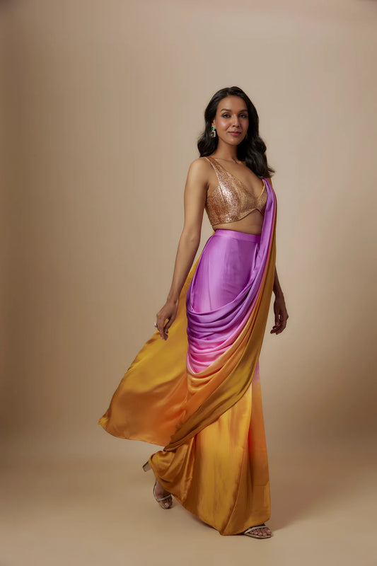 MUSTARD TO PURPLE OMBRE SAREE WITH BADLA EMBROIDERED BLOUSE