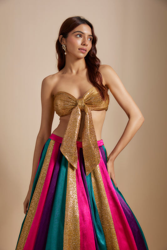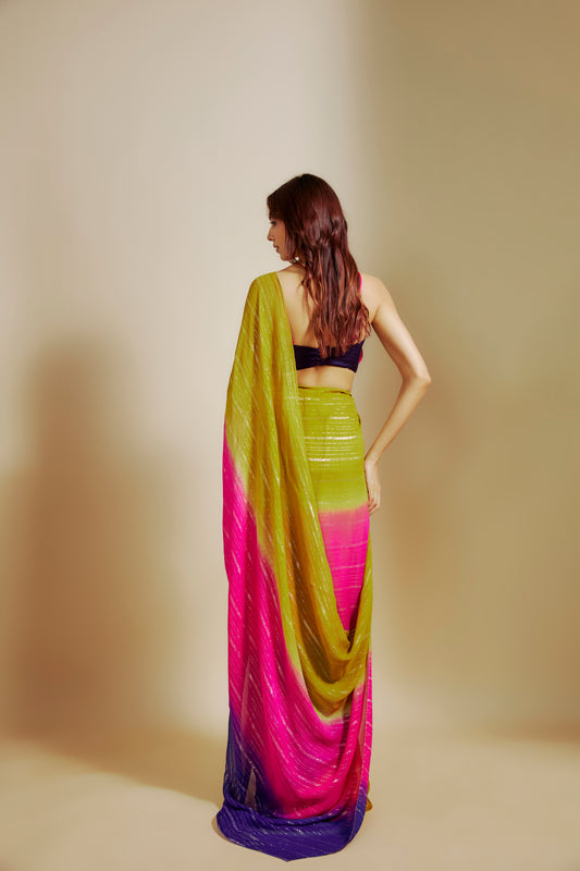 MUSTARD OMBRE SAREE WITH MULTI-COLOURED BLOUSE