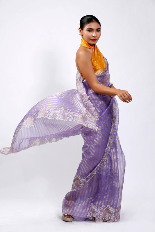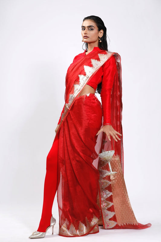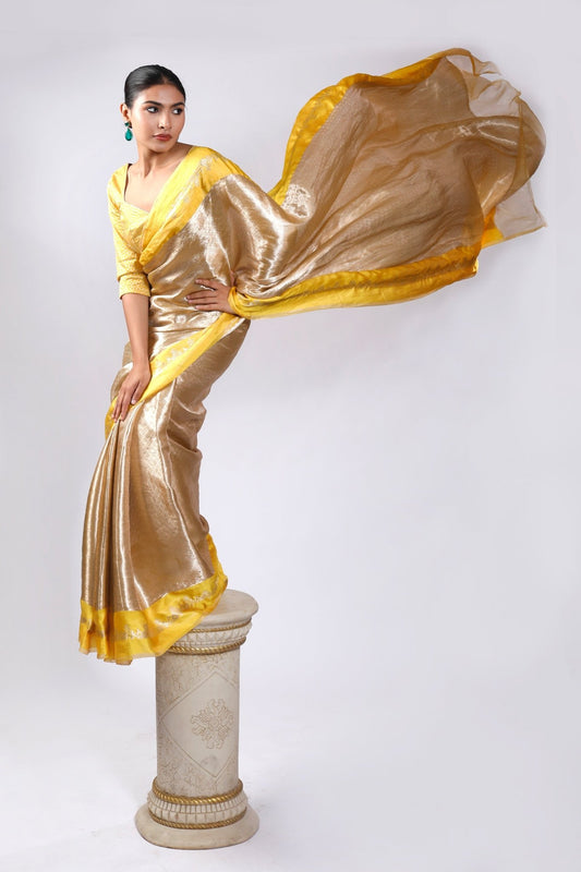 HANDWOVEN TISSUE BROCADE SAREE WITH SATIN BORDERS