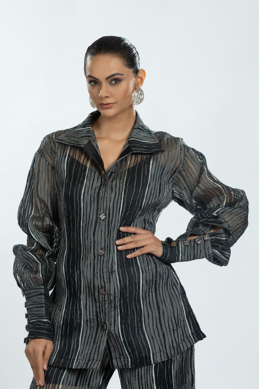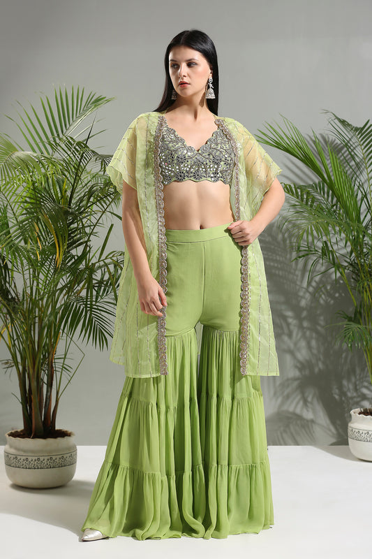 BLACK THREAD AND MIRROR HAND EMBROIDERED LEHENGA SET