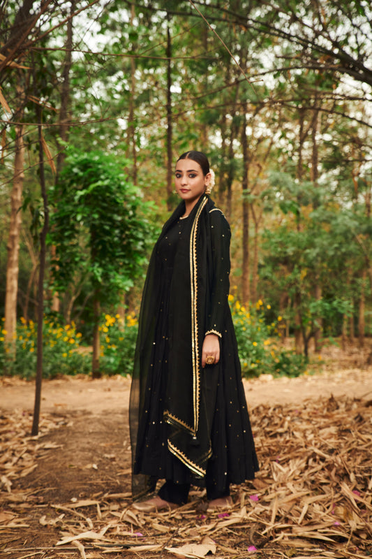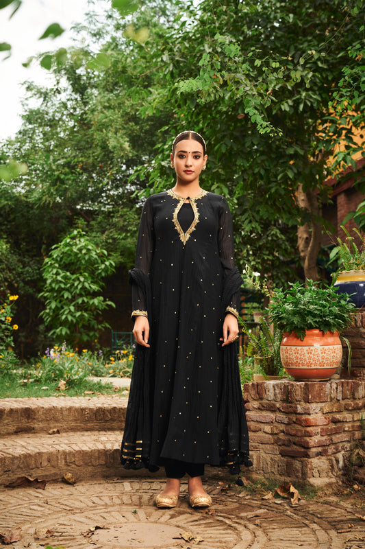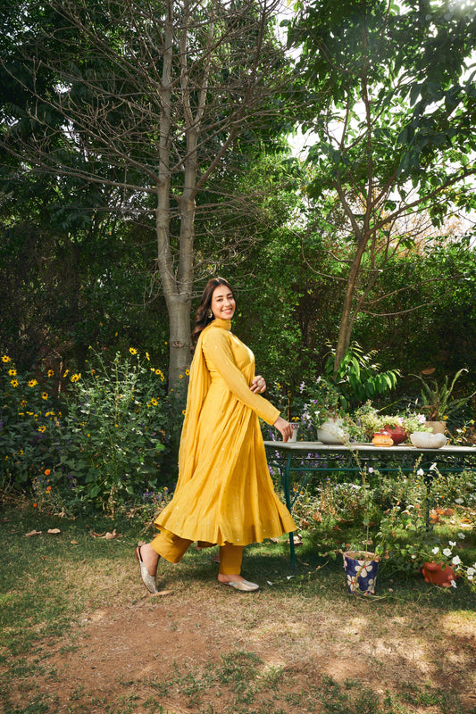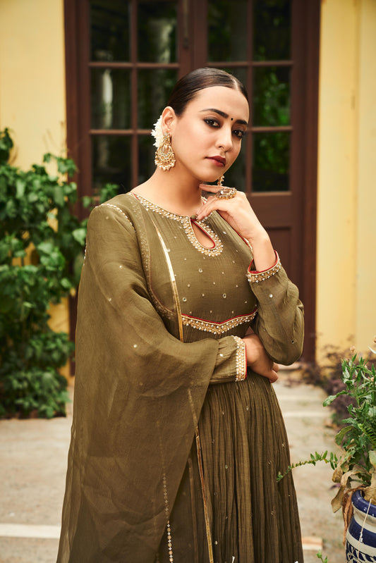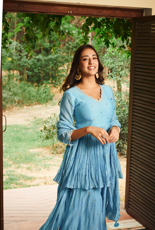 GINGKO LEAF PLEATED ONE SHOULDER BLOUSE & CHAMPAGNE SEQUIN PANEL SKIRT
