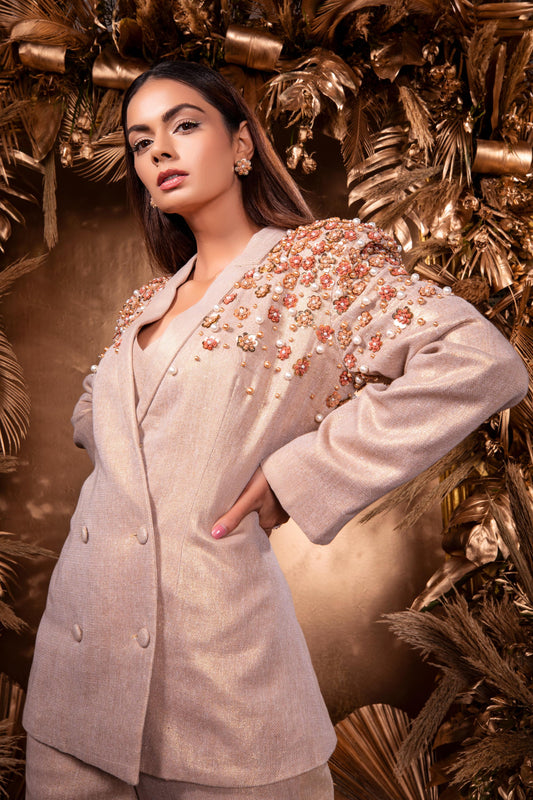 ROSE KNOTTED SHOULDER CORSET & ROSE PLEATED PANT