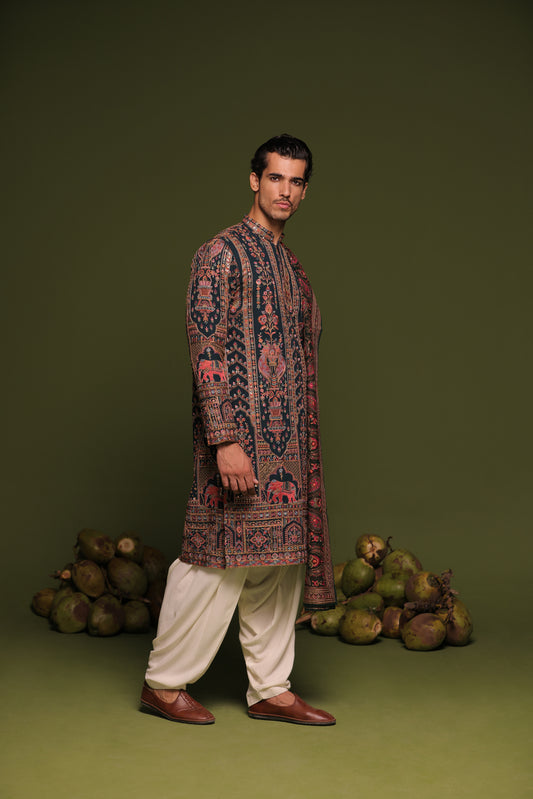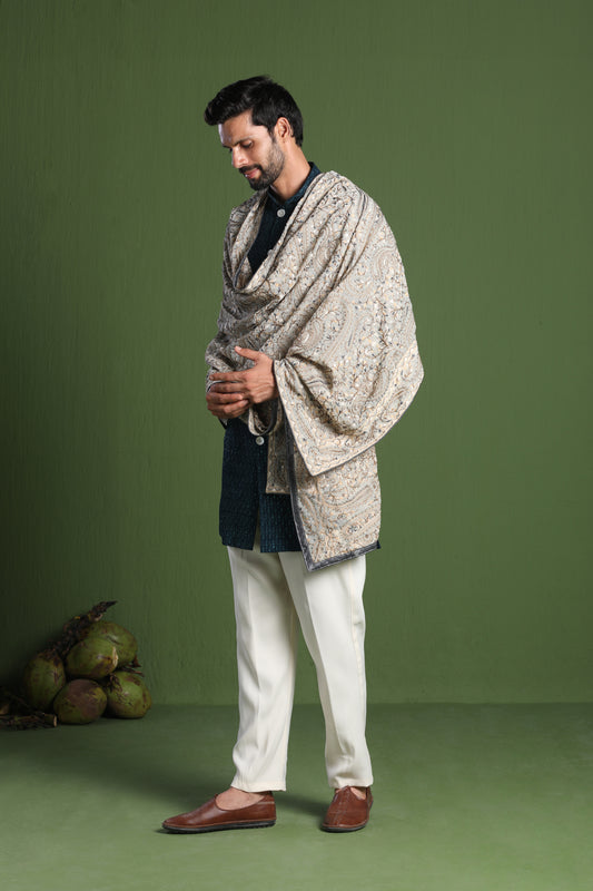 AKSHAY TEAL FRONT OPEN KURTA SET WITH HEAVY EMBROIDERED DUPATTA