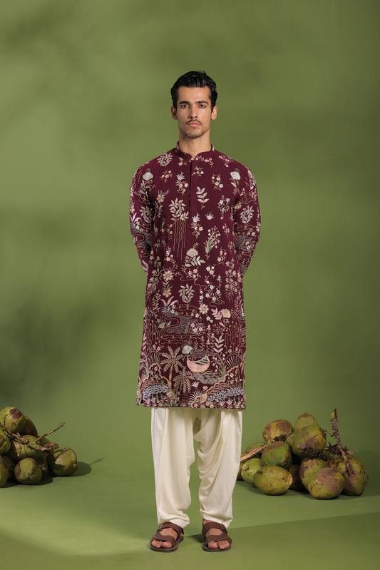 VIDYUT WINE KURTA PATIYALA SET WITH DUPATTA