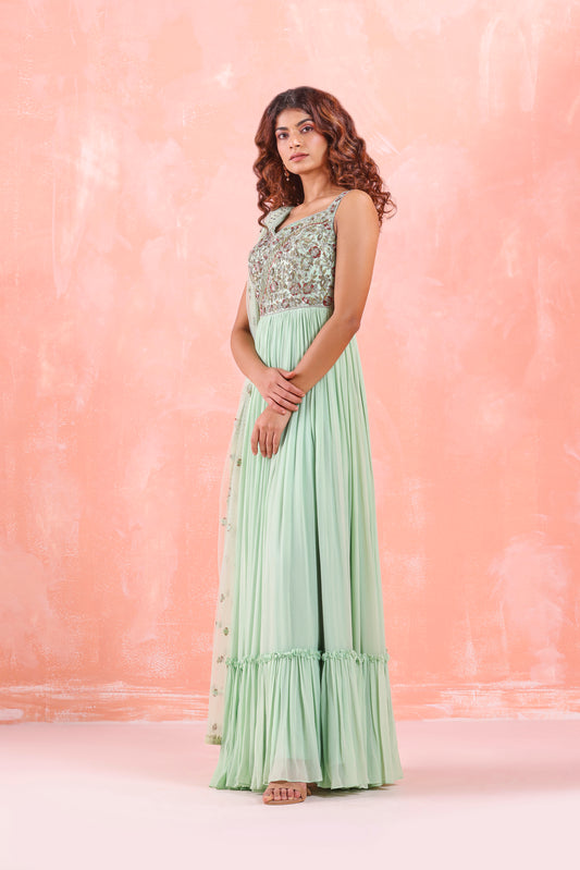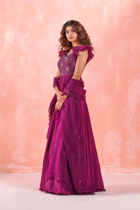LILAC FISH CUT SKIRT WITH EMBROIDERED BLOUSE WITH ATTACHED DUPATTA