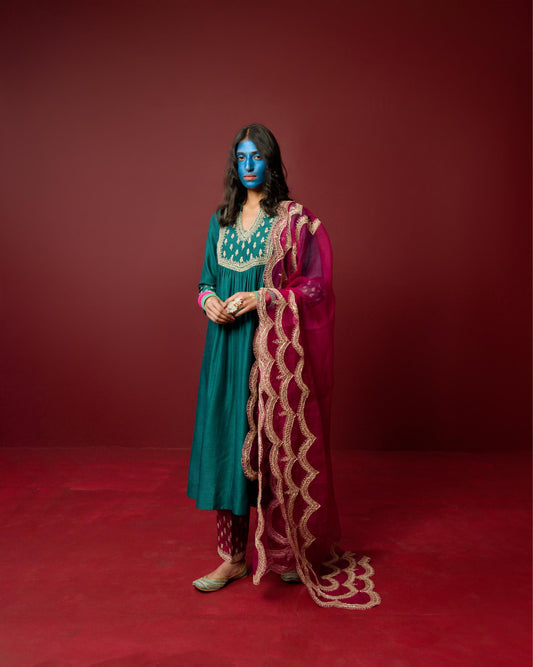 VINTAGE TRAILS PRINTED TWO LAYERED ANARKALI DRESS