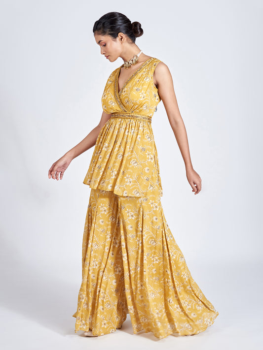 YELLOW MIRROR AND GOTA EMBELLISHED SHARARA SET