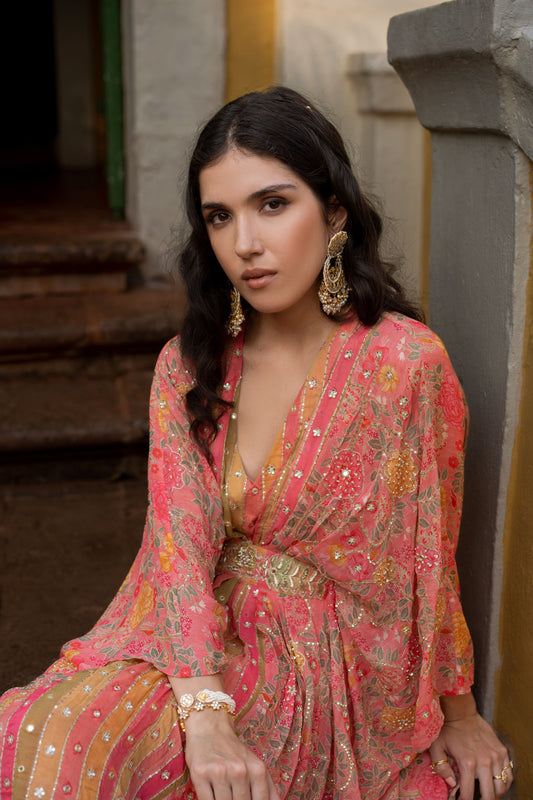 CLOUD PRINTED LONGLINE JACKET WITH KURTA SET