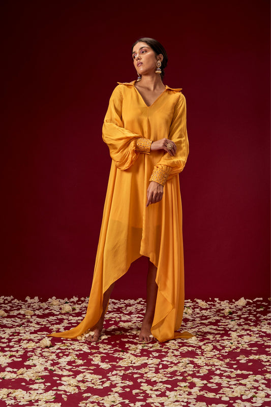 YELLOW MIRROR AND GOTA EMBELLISHED SHARARA SET