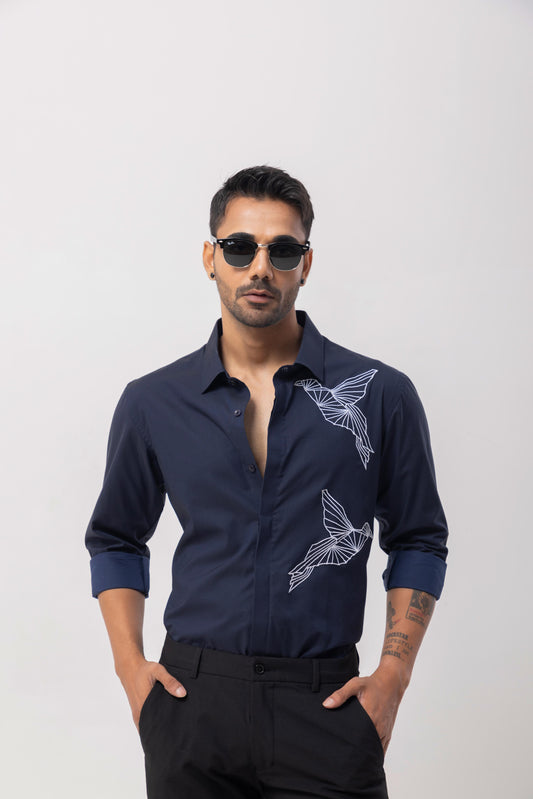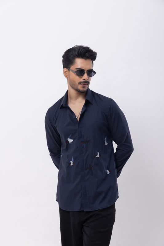 FLYING BIRD THREAD- HAND EMBROIDERED DESIGNER SHIRT