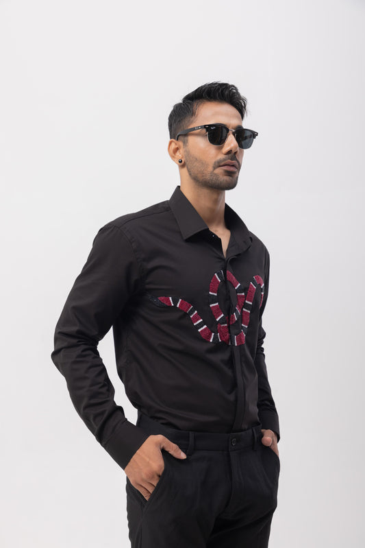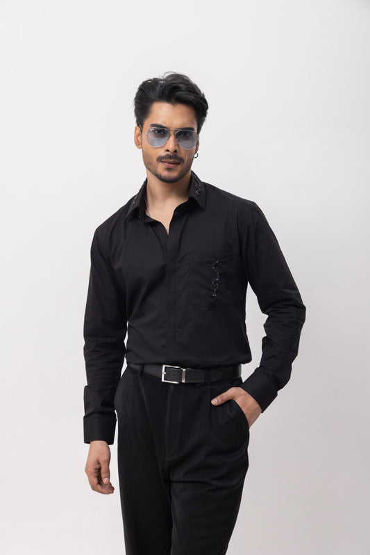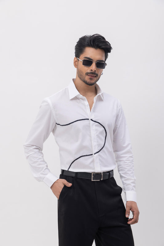 CRISS CROSS POCKET - HAND EMBROIDERED DESIGNER SHIRT