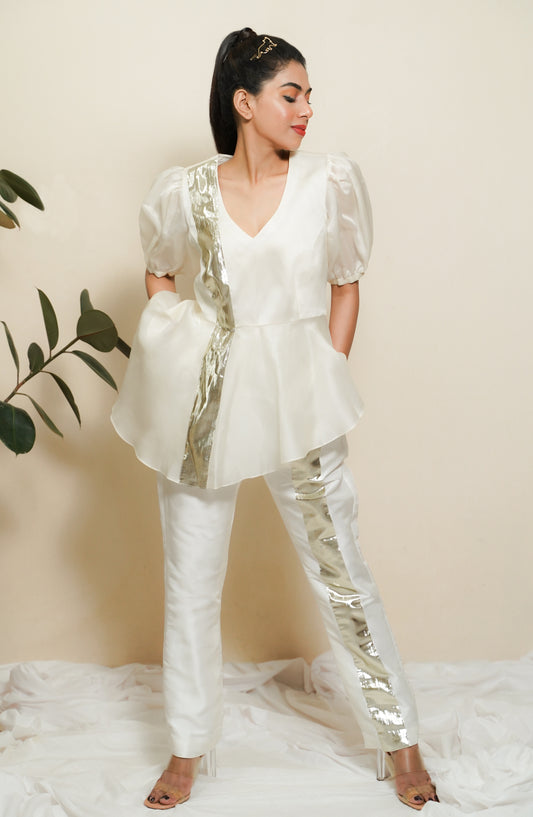 ASYMMETRIC SILVER STRIPE ORGANZA SET