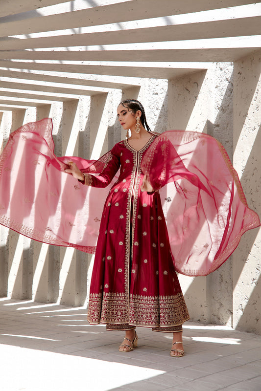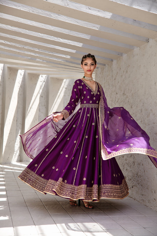 VINTAGE TRAILS PRINTED TWO LAYERED ANARKALI DRESS