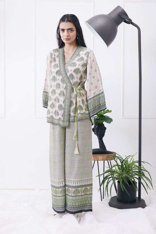 CLOUD PRINTED LONGLINE JACKET WITH KURTA SET