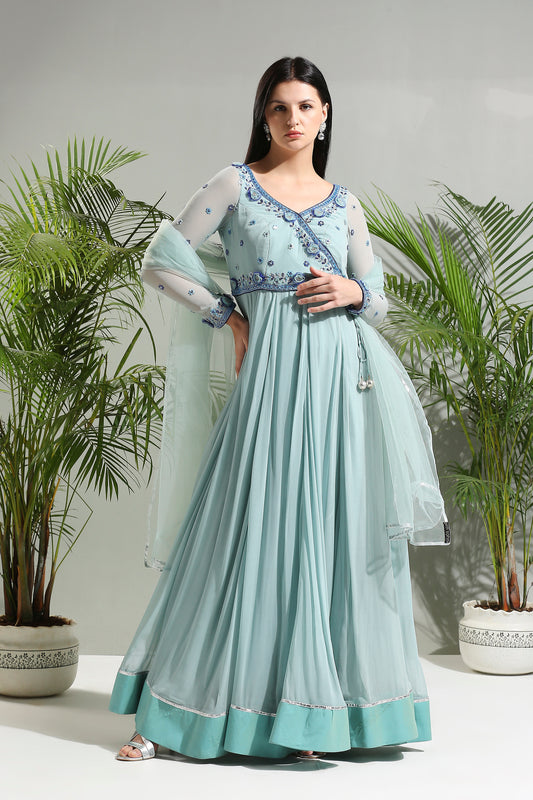BLACK THREAD AND MIRROR HAND EMBROIDERED PALAZZO SET