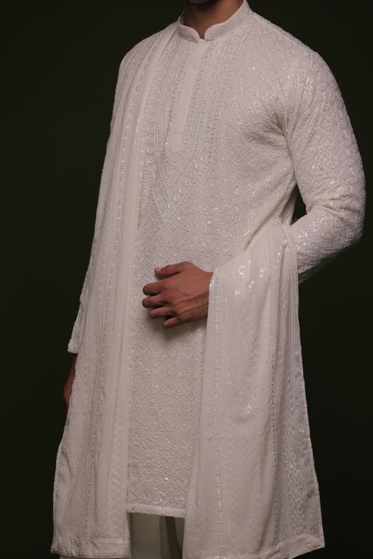 DAKSHA WHITE KURTA SET WITH PATIYALA AND DUPATTA