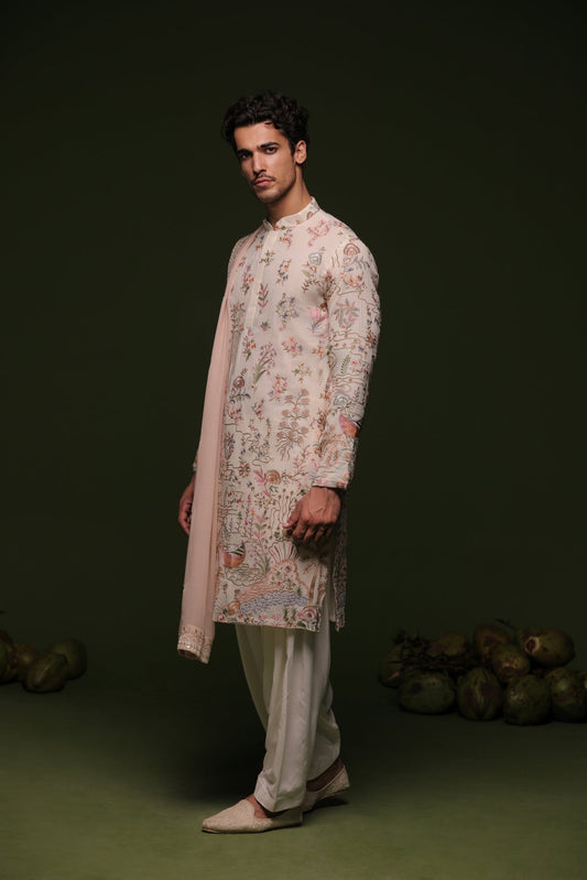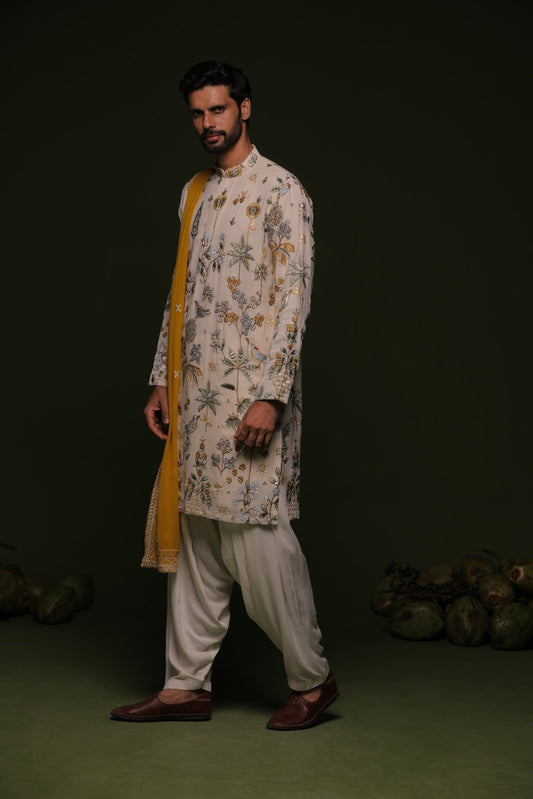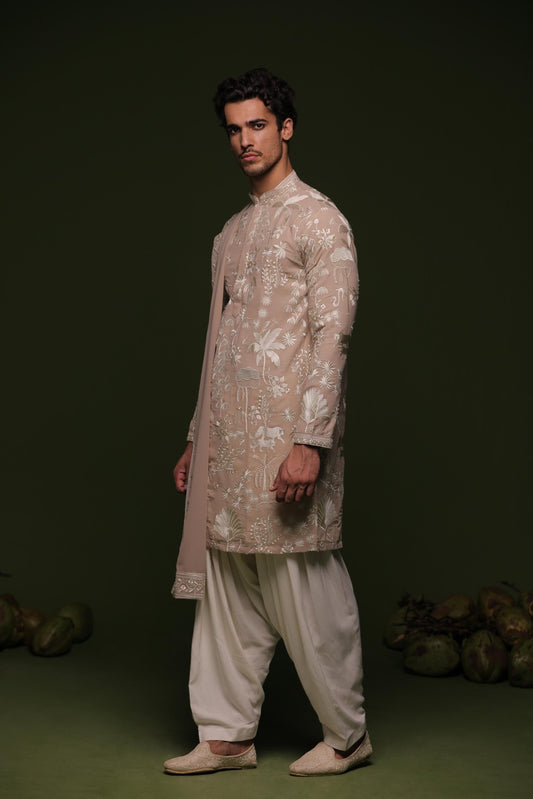 VARA BEIGE KURTA SET WITH PATIYALA AND DUPATTA