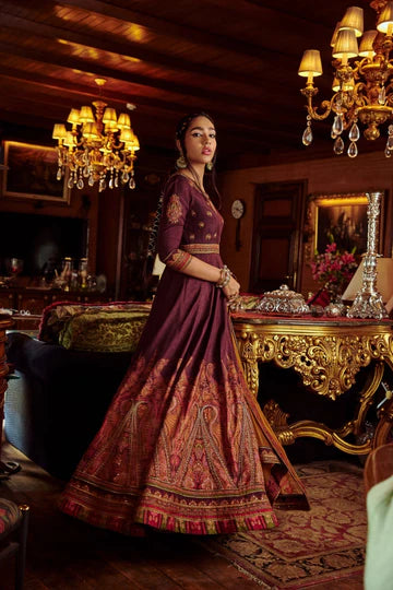 AUBERGINE PURPLE FLORAL PRINTED LEHENGA SET